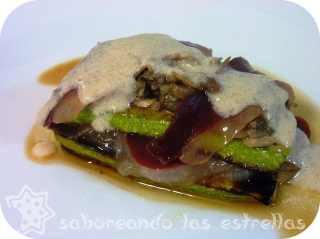 Al final cambie de idea y el entrante del día de navidad no fueron los vasitos crujientes de pimiento, si no este mil hojas de calabacín exquisito, exquisito.