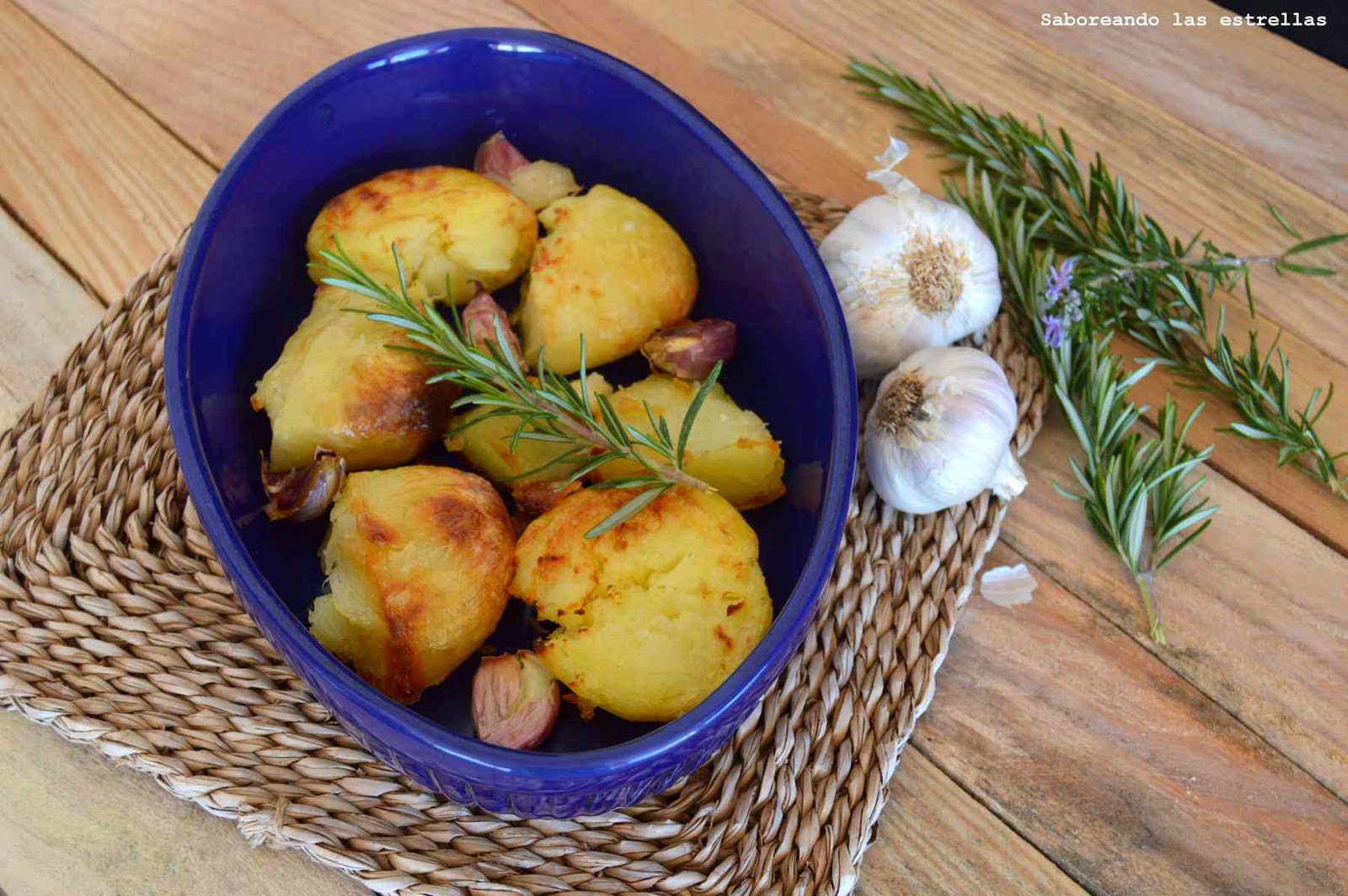 No podéis imaginar la sorpresa que me he llevado cuando repasando el blog me he dado cuenta que no tenía publicada esta maravillosa guarnición. Unas sencillas y riquísimas patatas asadas, eso si... son perfectas o mas....