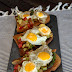 Colocaremos sobre una rebanada un poco de verdura y sobre esta dos huevos de codorniz y ya solo queda disfrutarlo con nuestra bebida favorita... ¡bon apetit!